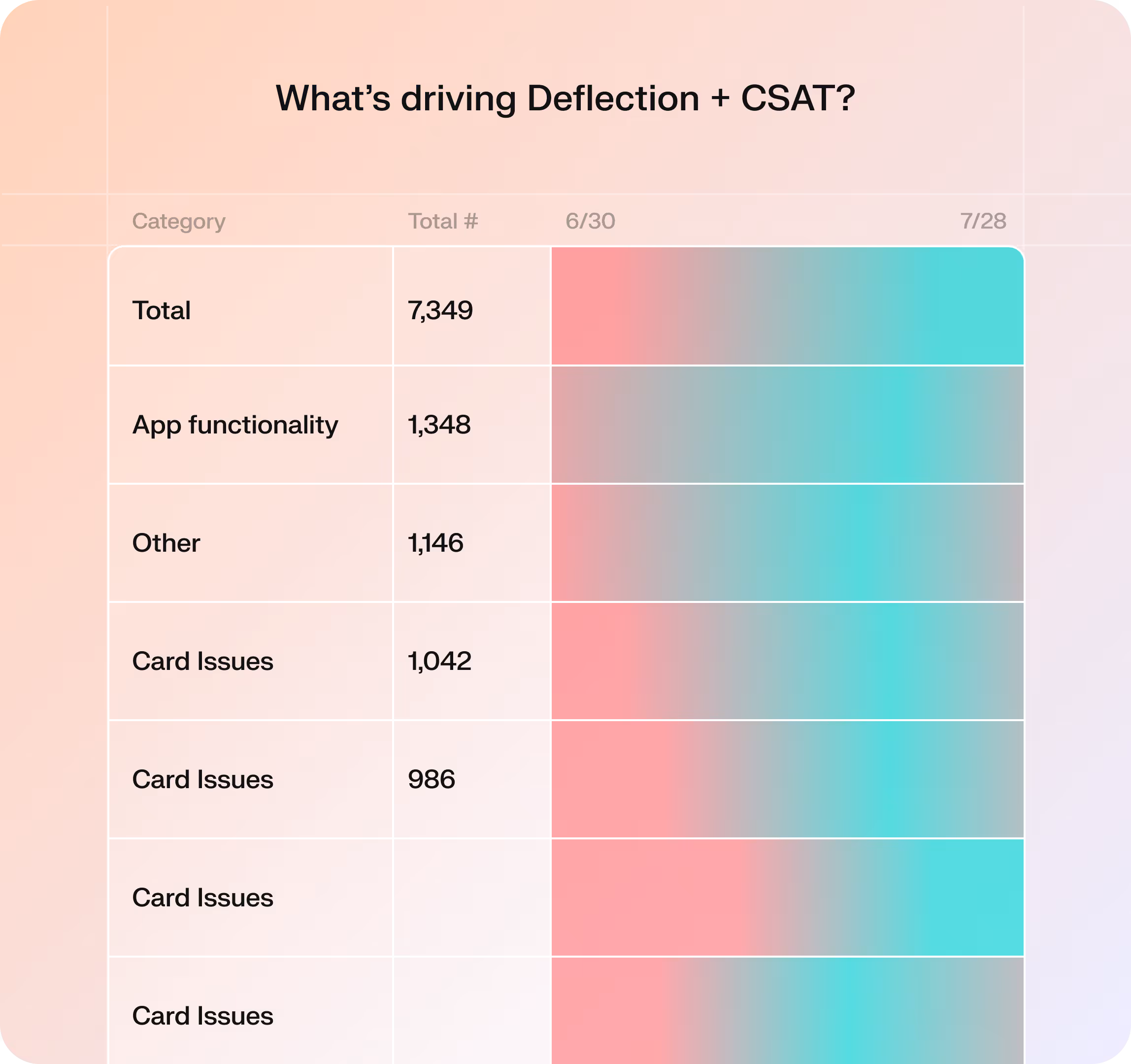 Identify clusters of issues driving negative deflection or CSAT and understand expectation gaps.