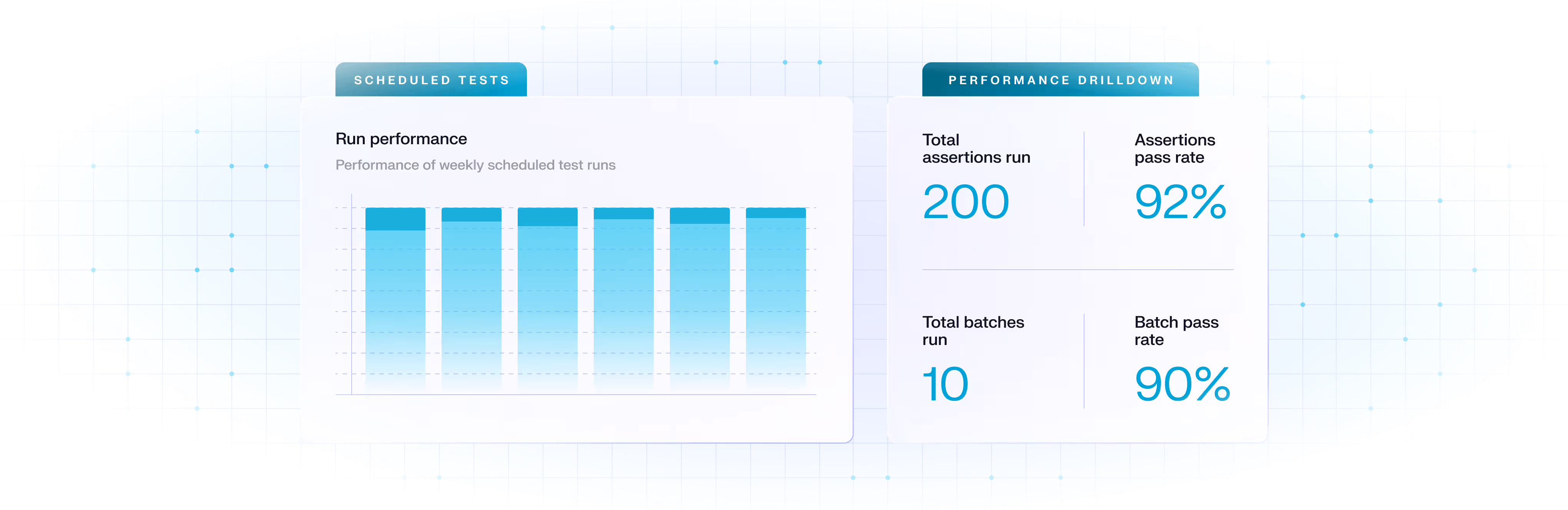 Set up recurring simulations that automatically validate behavior over time, so you can continuously monitor changes and catch issues before they impact customers.